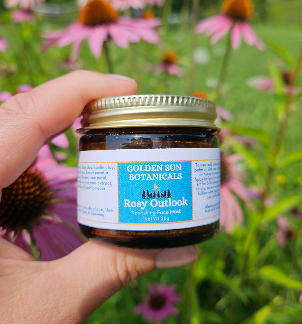 This is a powder mask that you mix at home with an activator like water, honey, or leftover herbal tea! This 2oz container will last a long time! It features rose clay and kaolin clay, which gently draw out dirt and improves circulation, as well as rose petal, hibiscus and marshmallow root, which are all cooling, soothing herbs leaving skin feeling soft and hydrated. Rose extract and hydrolized pearl even and brighten skintone. Follow use with a moisturizer for best results.